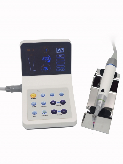 Эндомотор управляется сенсорными элементами и позволяет сохранять до 9 индивидуальных программ. Такое сочетание характеристик делает прибор удобным для точного контроля и настройки параметров при лечении корневых каналов.
